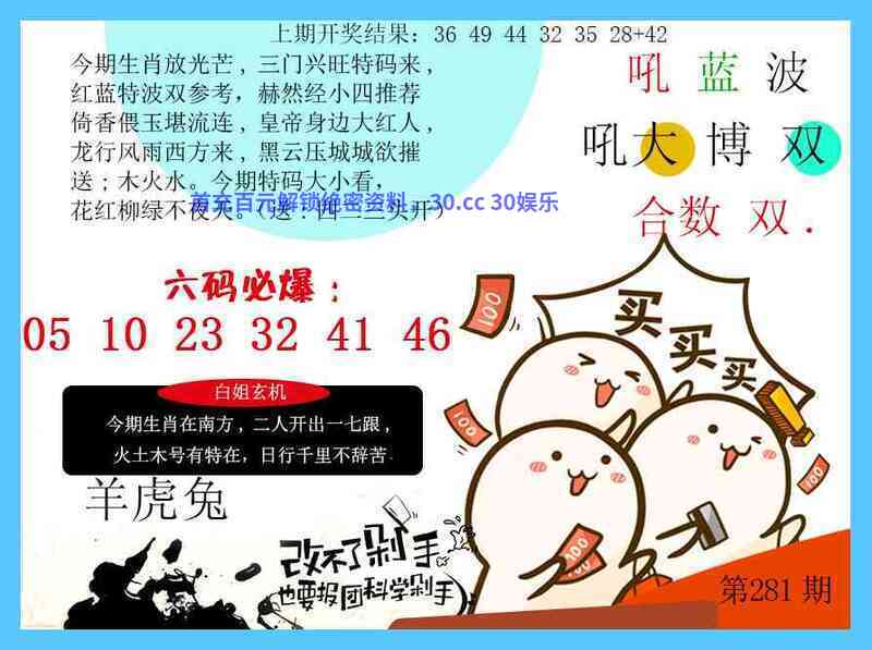 281期:【绝杀十码】开:羊47中